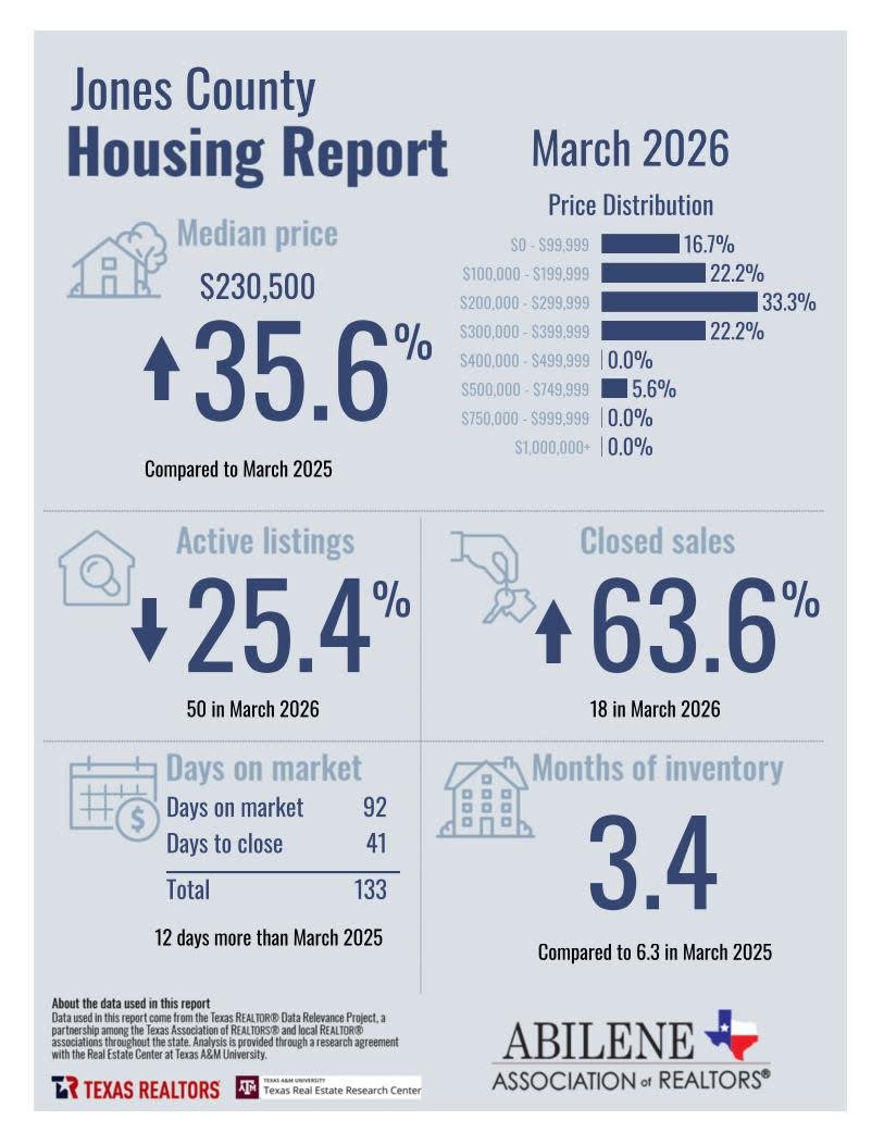 Key Housing Market Stats – Jones County (March 2026)