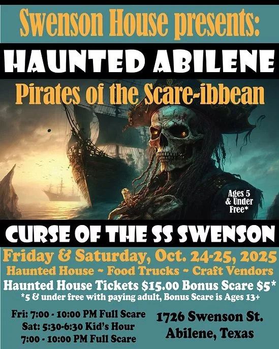Even more exciting? This October, the Swenson House will take center stage at one of the city’s spookiest—and most meaningful—events: Haunted Abilene: Pirates of the Scare-ibbean – Curse of the SS Swenson.